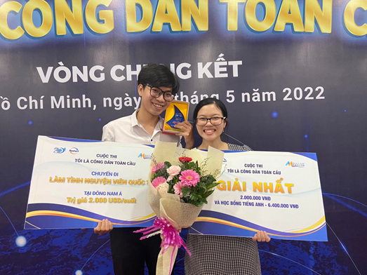 Trải qua 3 phần thi đầy kịch tính tại vòng chung kết cuộc thi “Tôi là Công dân Toàn cầu” diễn ra vào 21/5/2022, đội thi Twenty Seven đến từ trường Đại học FPT đã xuất sắc giành chiến thắng và chạm tay đến 02 suất đi làm tình nguyện viên quốc tế tại Đông Nam Á trị giá 4.000 USD.